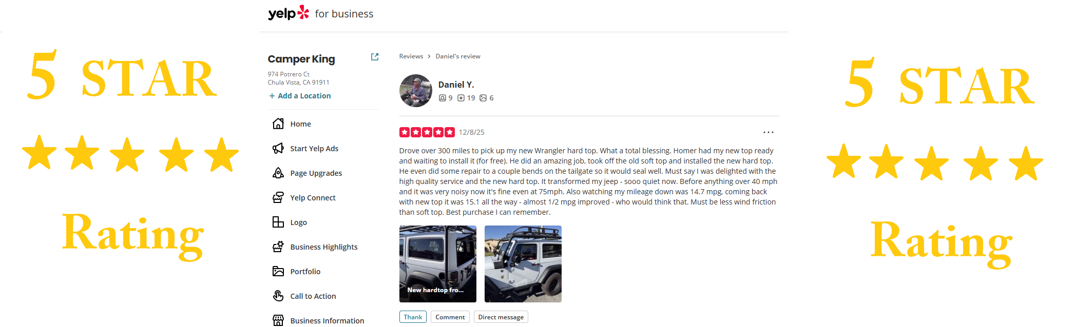 At Camper King, we're passionate about all things related to Jeeps, and we're always eager to talk to fellow enthusiasts about their needs. So feel free to drop us a message anytime, and we'll be more than happy to discuss the best options for your Jeep Wrangler.